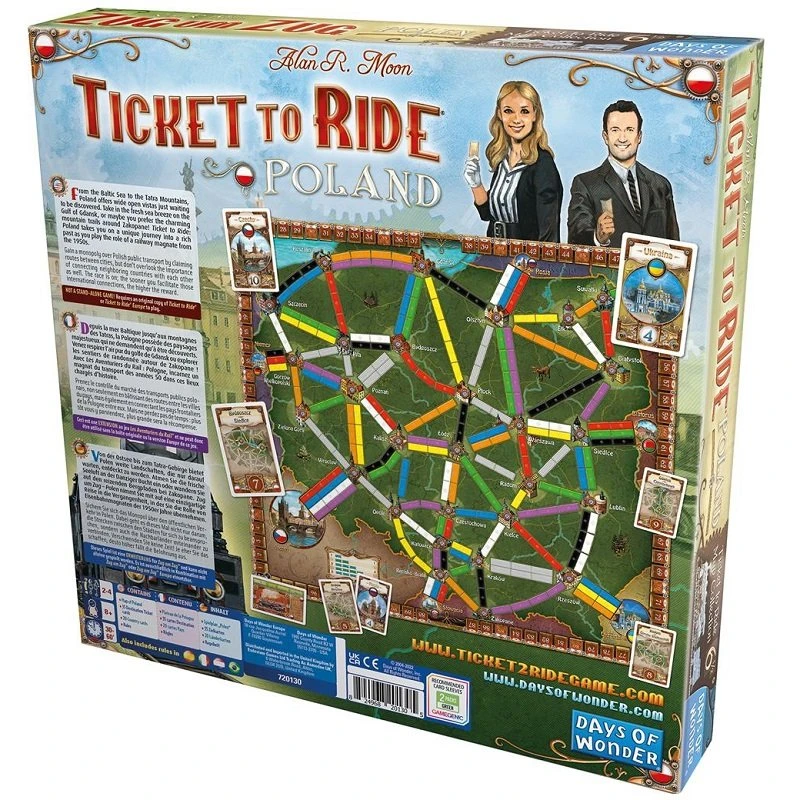 De la mer Baltique jusqu’aux montagnes de Tatras, faites défiler les paysages majestueux de la Pologne ! Cette extension pour les Aventuriers du Rail était à l’origine une exclusivité pour le marché polonais. La voici désormais disponible pour tout le monde. De 2 à 4 joueurs dès 8 ans, engagez-vous dans des parties d’environ 45-60 minutes.