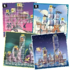 Captain Flip propose un jeu simple de prise en main et très sympathique, où chaque tour est l’occasion d’un dilemme nouveau. Avec plusieurs plateaux pour changer les contraintes de chaque partie, il offre une rejouabilité pleine de subtilités à ce jeu familial original !