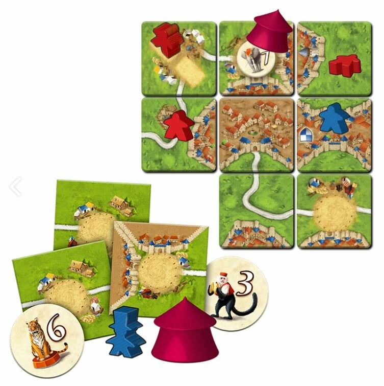 Tous en Piste est une extension pour Carcassonne qui amène un peu de fraîcheur et de créativité ! Elle comporte trois nouveautés majeures :
