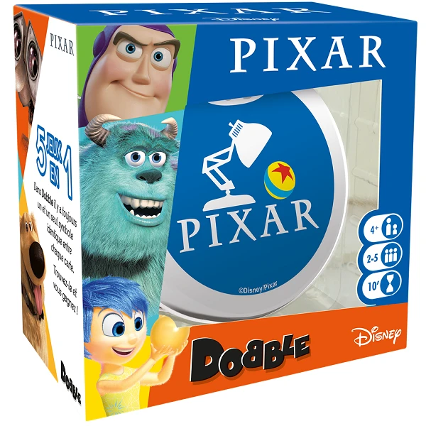 Tous les univers des studios Pixar sont à portée de main⊠Repérez-les symboles en commun entre deux cartes et remportez la manche !