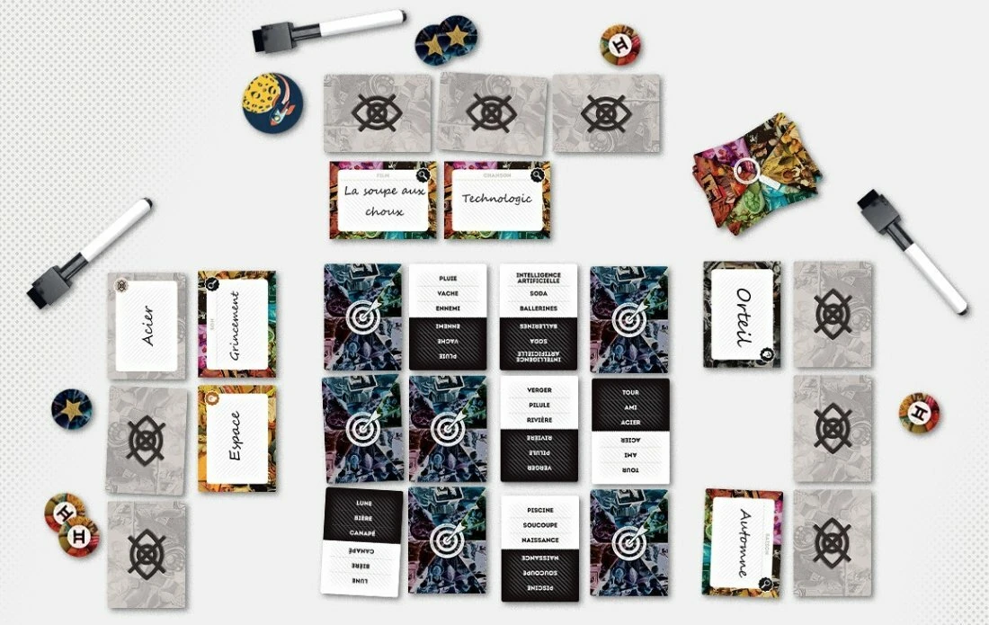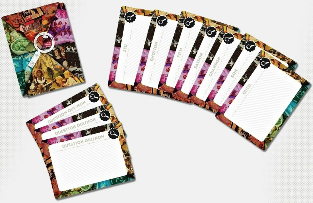 Durant la phase de création d’indices, piochez deux cartes indices et écrivez dessus des indices en fonction de leur catégorie : Couleur, Émotion, Outil… Ces indices ne s’appliquent pas à vos mots secrets mais doivent pouvoir s’appliquer à ceux des autres joueurs !