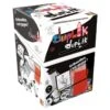 Contenu du jeu : 1 plateau de jeu, 66 cartes action, 12 cartes trésor, 80 jetons or, 45 jetons nourriture, 45 jetons poudre, 6 bateaux en plastique, 9 jetons trésor, 6 plaques cales, 3 dés, 1 boussole, règles du jeu.