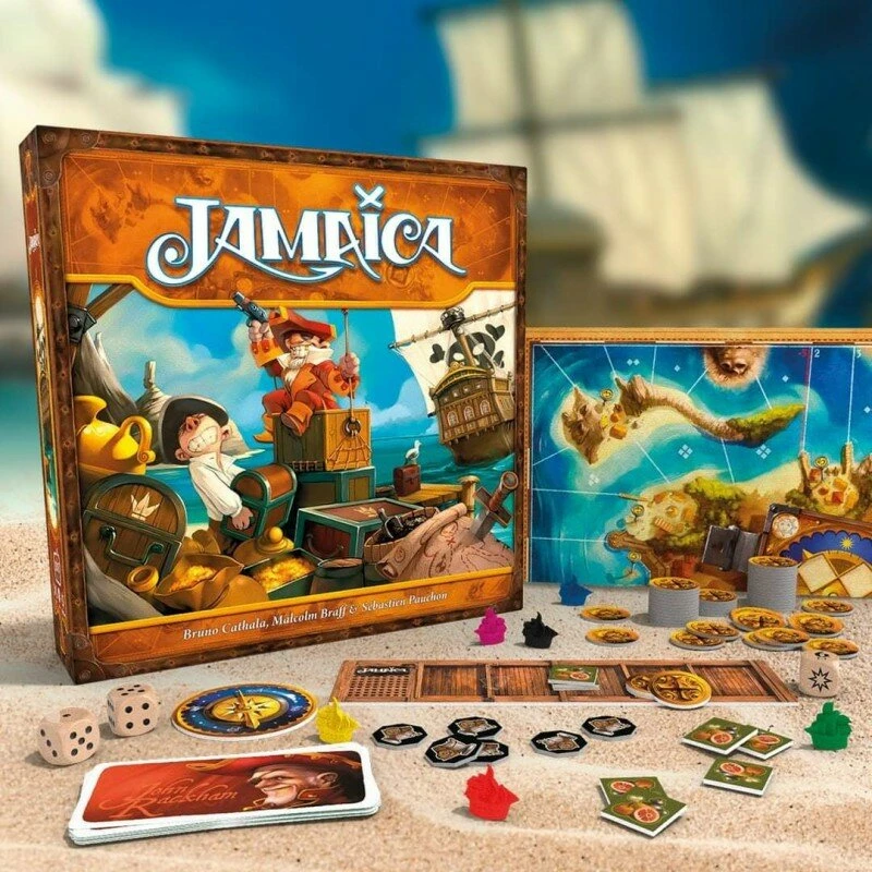 Le but de Jamaica est donc de faire le tour de l’île le plus vite possible en récupérant des marchandises nécessaires à ce genre de course : de l’or pour les taxes portuaires, de la poudre pour les combats navals et des vivres pour voyager en mer.