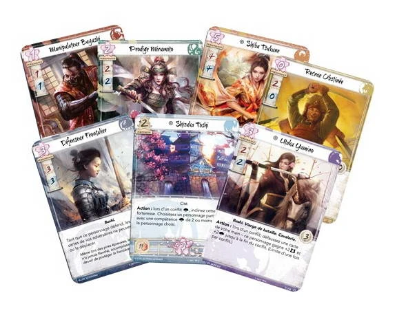 Chaque joueur dirige ses forces à l’aide de deux decks séparés : un deck Dynastie, qui peuple ses provinces de personnages et propriétés, et un deck Conflit, comprenant des tactiques, des manœuvres, des partisans et des accessoires qui peuvent être utilisés pour reprendre le dessus et asseoir sa suprématie dans un combat. Au cours des parties, les joueurs s’opposeront dans des conflits politiques et militaires, dans le but de conquérir les places fortes de leur adversaire pour atteindre la victoire. Mais les règles de la société sont absolues, et les clans ne doivent jamais oublier les principes du Bushidō, sans quoi leur quête égoïste de gloire les mènera à leur perte…