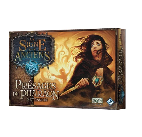 Le Signe des Anciens : Présages du Pharaon entraîne les joueurs jusqu’aux souks animés du Caire afin qu’ils s’y préparent pour leur périple imminent vers la nécropole royale de Dahchour, dernière demeure d’un être maléfique âgé de plusieurs millénaires qui menace d’arpenter à nouveau la Terre. Six investigateurs collectent de précieuses reliques, espérant ainsi repousser le mal tapi dans les chambres secrètes de la pyramide qu’ils explorent. Cette extension introduit également de nouveaux monstres et alliés, ainsi qu’un paquet Mythe inédit. Saurez-vous triompher de la menace qui se terre sous les sables ? Libérez le pouvoir des reliques et des ruines d’Égypte avec Présages du Pharaon ! !