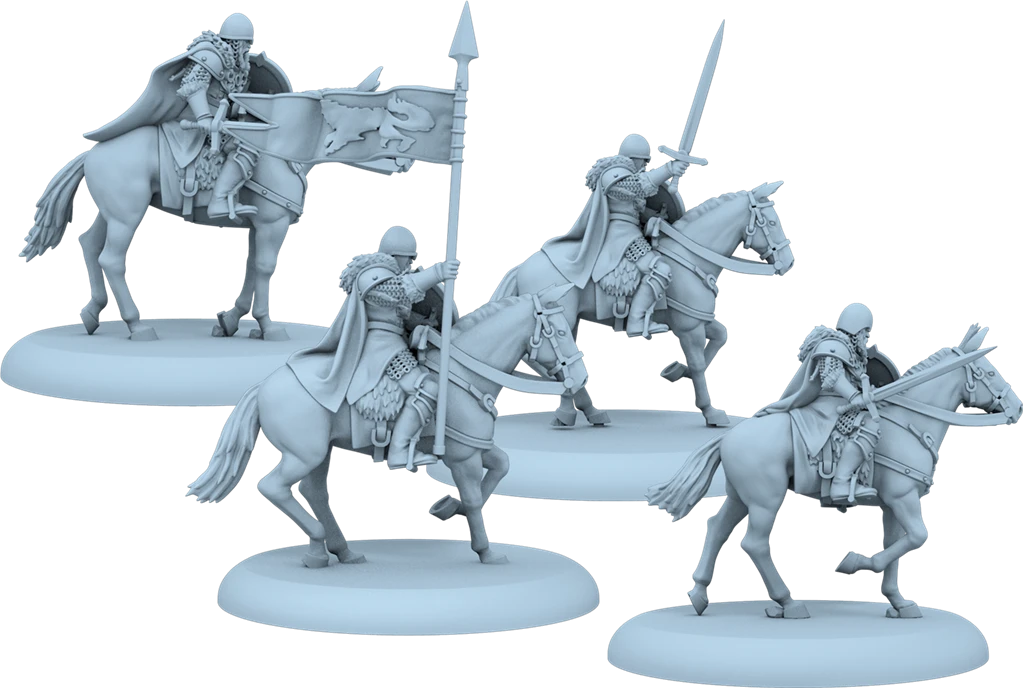Bien qu’ils ne soient pas équipés pour de longs corps à corps, les Cavaliers de la Maison Stark se retrouvent rarement en mauvaise position. Ils se caractérisent par une mobilité sans pareille, grâce à leurs armures légères et leurs chevaux non bardés, entraînés à conserver leur calme et à galoper.