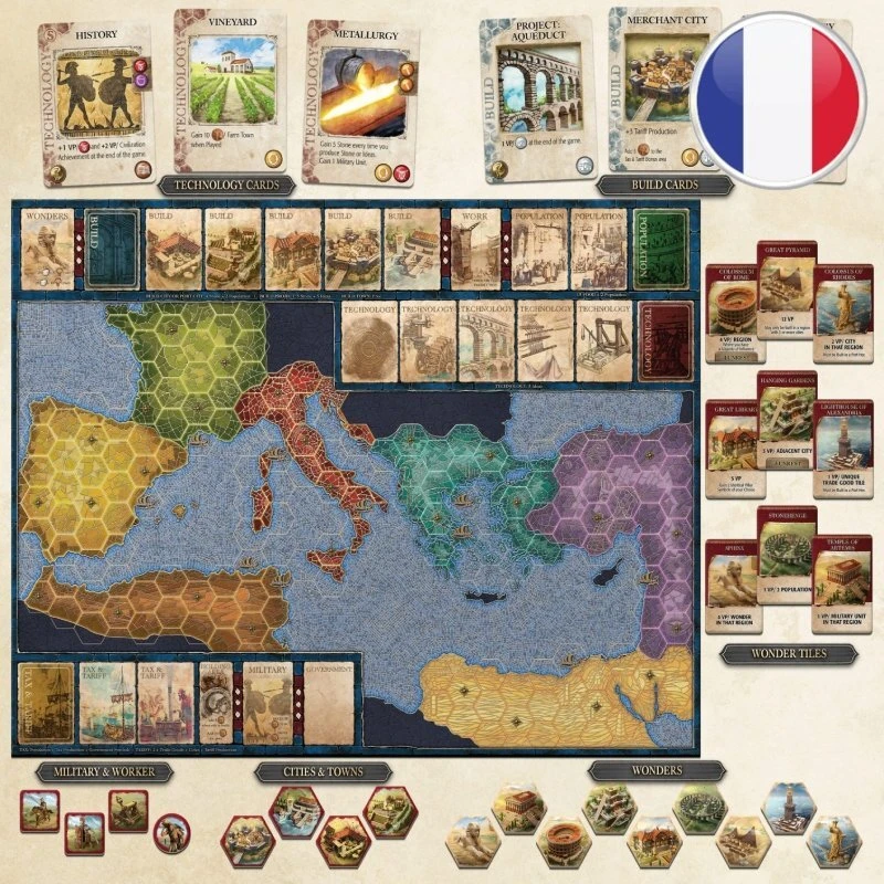 Vous marquerez alors des points pour vos villes et villages, vos merveilles, vos projets et vos âges d’or, ainsi que pour toutes vos cartes qui marquent des points pour vos composants uniques de civilisation.