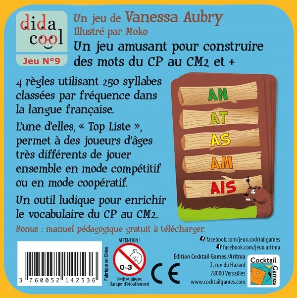 Des cartes comprenant des groupes de lettres tels que « AN », « BR » ou « AIS » aideront les enfants à apprendre les syllabes en douceur.