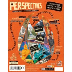 Perspectives est un jeu d’enquêtes coopératif dans lequel joueurs et joueuses doivent décrire les scènes qu’ils voient pour comprendre les événements passés. Il se joue de 2 à 6, dès 14 ans, pour des parties de 90 minutes environ.