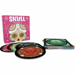 Pour jouer, placez devant vous un tapis face Skull visible. Prenez ensuite en main un paquet de 4 cartes identiques en cachant toujours leur face aux autres joueurs.