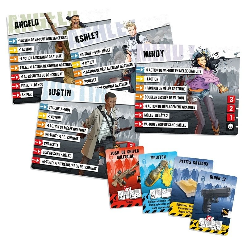Une nouvelle fonction de zone noire, une zone qui cache les zombies des attaques de survivants, a également été ajoutée. Zombicide Seconde Edition comprendra également de nouveaux composants et de nouvelles miniatures, notamment des planches en plastique et de nouveaux enfants survivants. Les joueurs pourront également utiliser leur collection existante des versions précédentes de Zombicide.